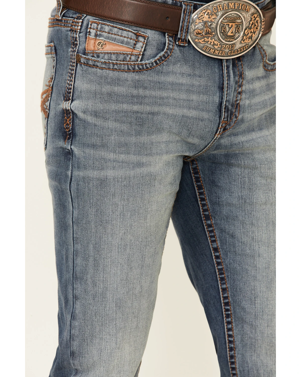 - Criss cross stitching on back pockets