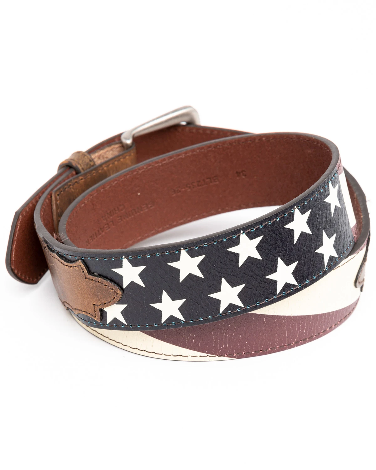 - Printed vintage American flag strap with leather billets