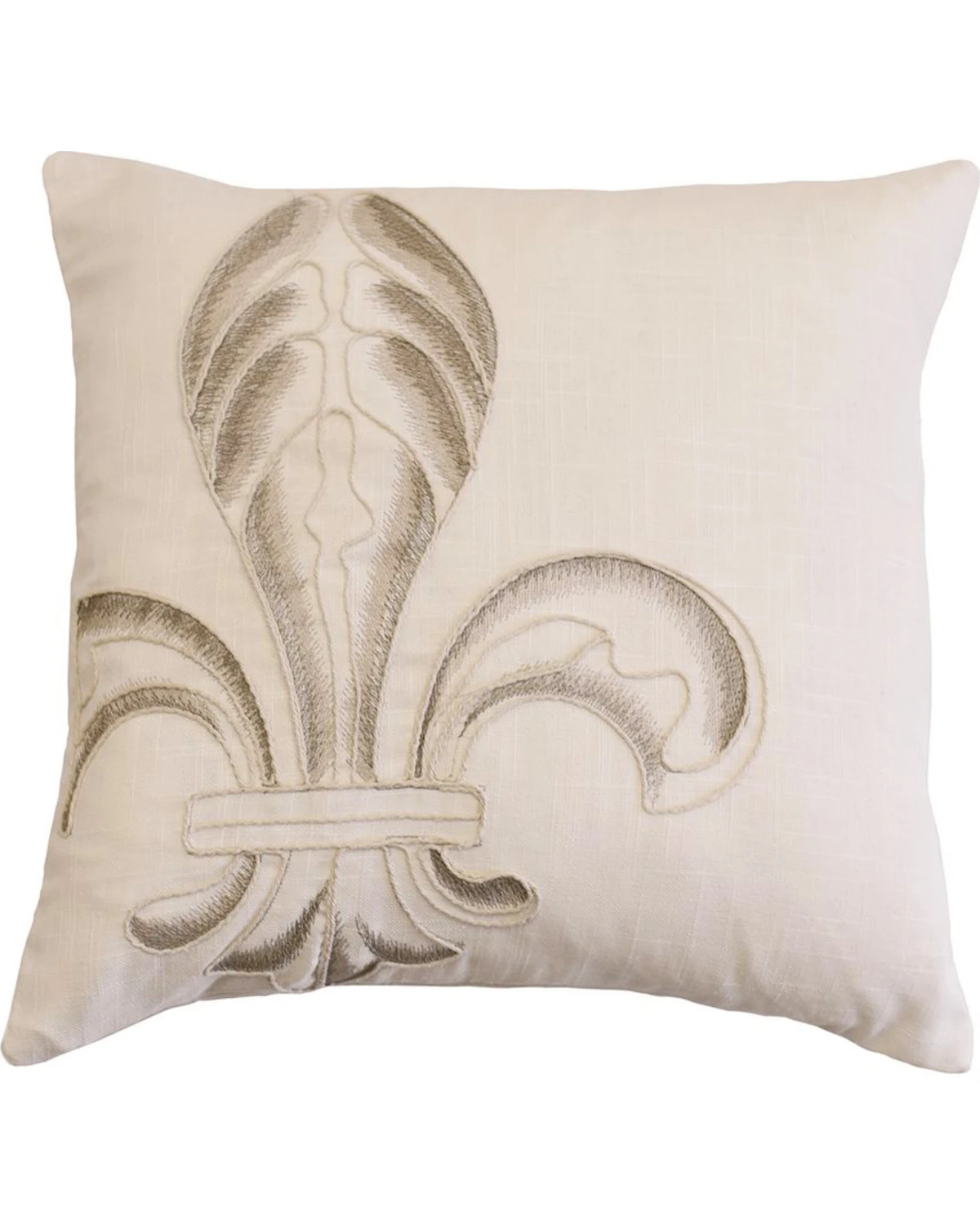 This beautiful pillow by HiEnd Accents features an embroidery Fleur De Lis pattern in a neutral cream color. Measures 18X18″.
