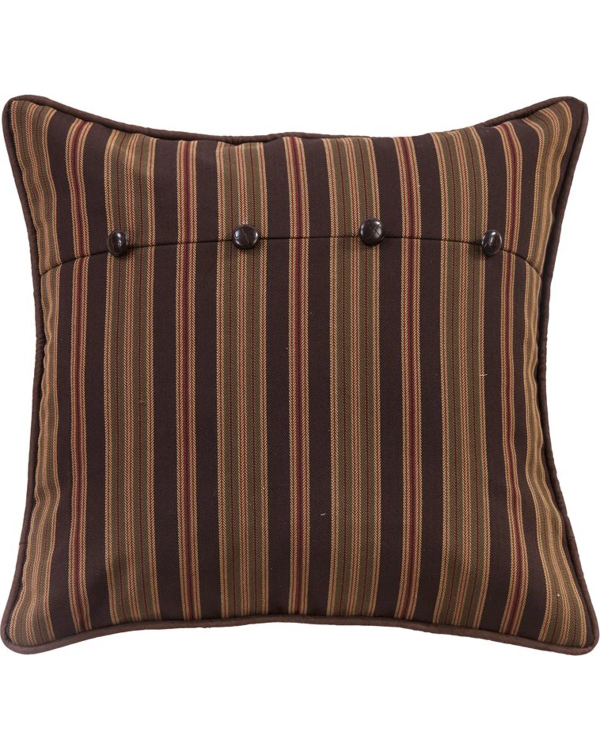 This forest pine stripe euro sham by HiEnd Accents is the perfect rustic accent piece. Add a woodsy vibe to any room with the brown and burgundy color scheme and button details. Measures 27X27″.