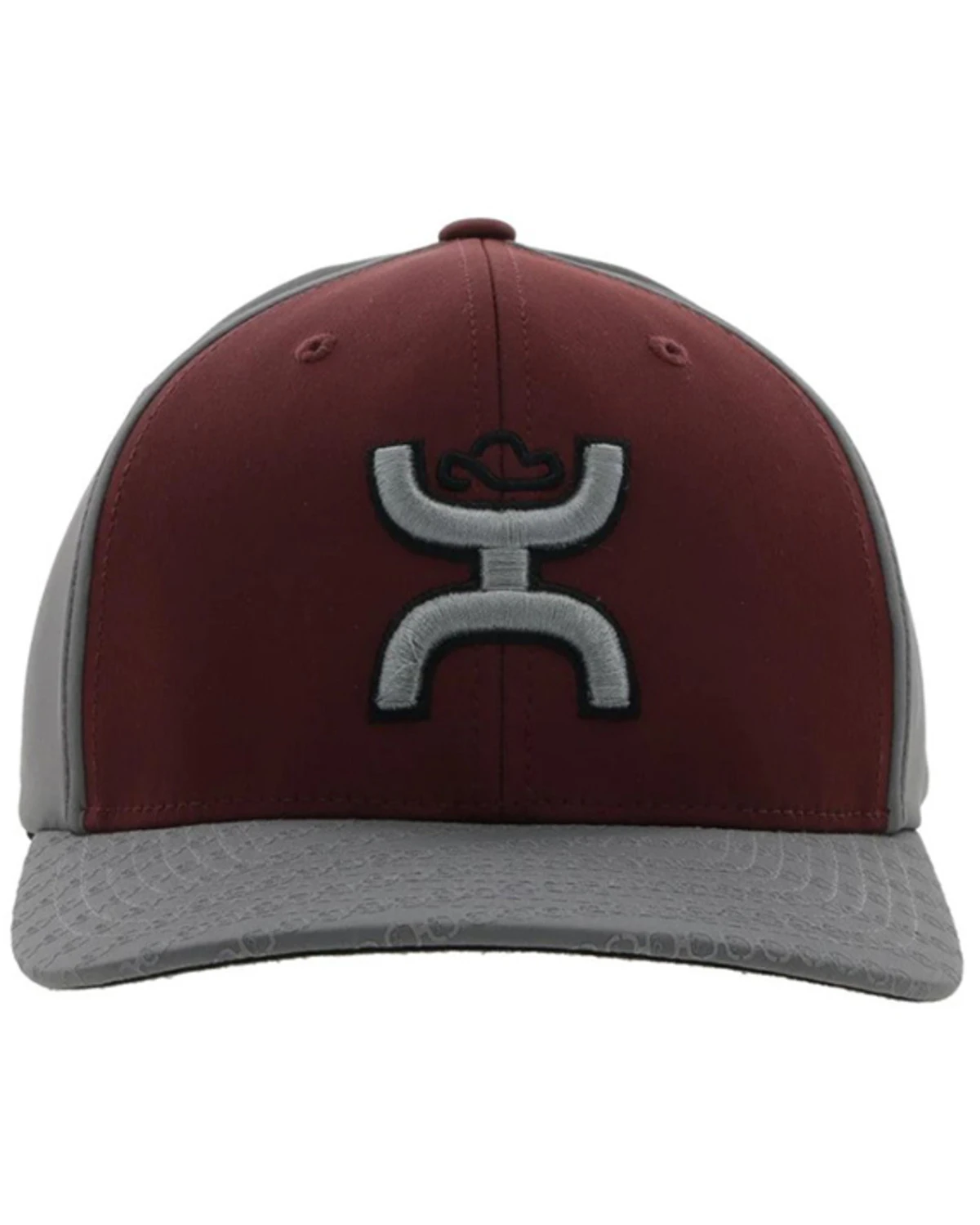 - Burgundy front with gray bill and back