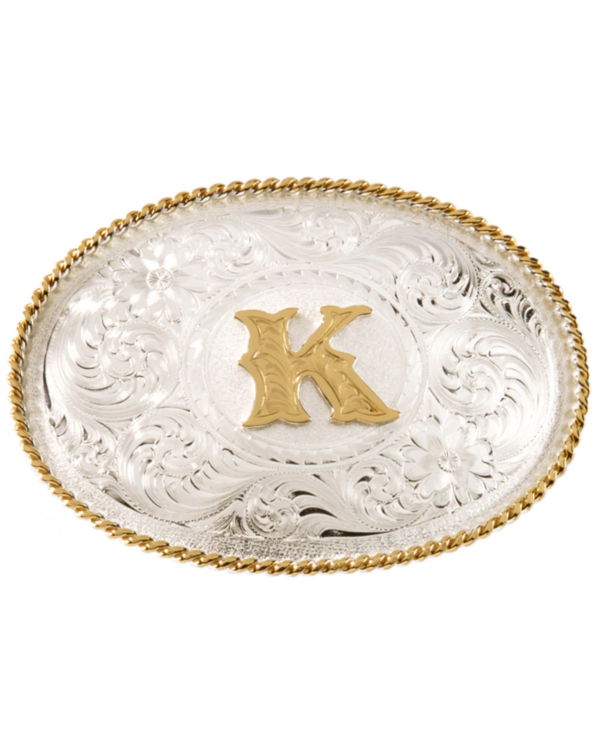 - Sterling silver-plated oval-shaped filigree buckle