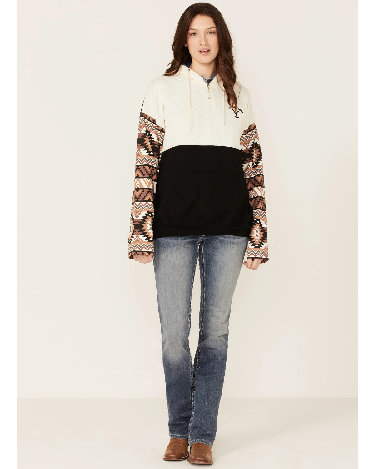 - Attached hood with adjustable drawstring closure and 1/4 zip closure