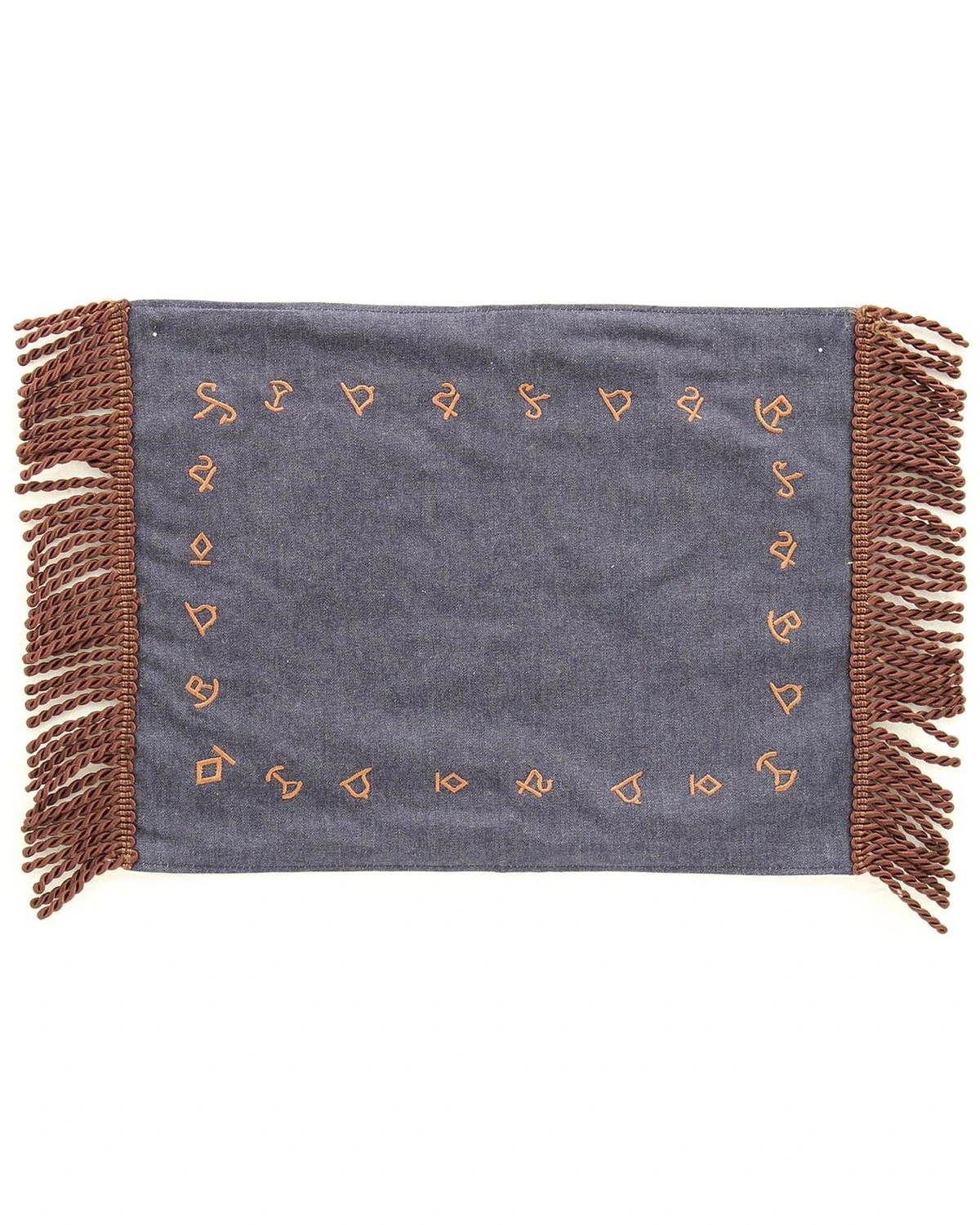Set your table in style with these placemats by Western Moments! This set of four placemats features a denim look with embroidered branding designs. Fringe tassels at each end. Imported.