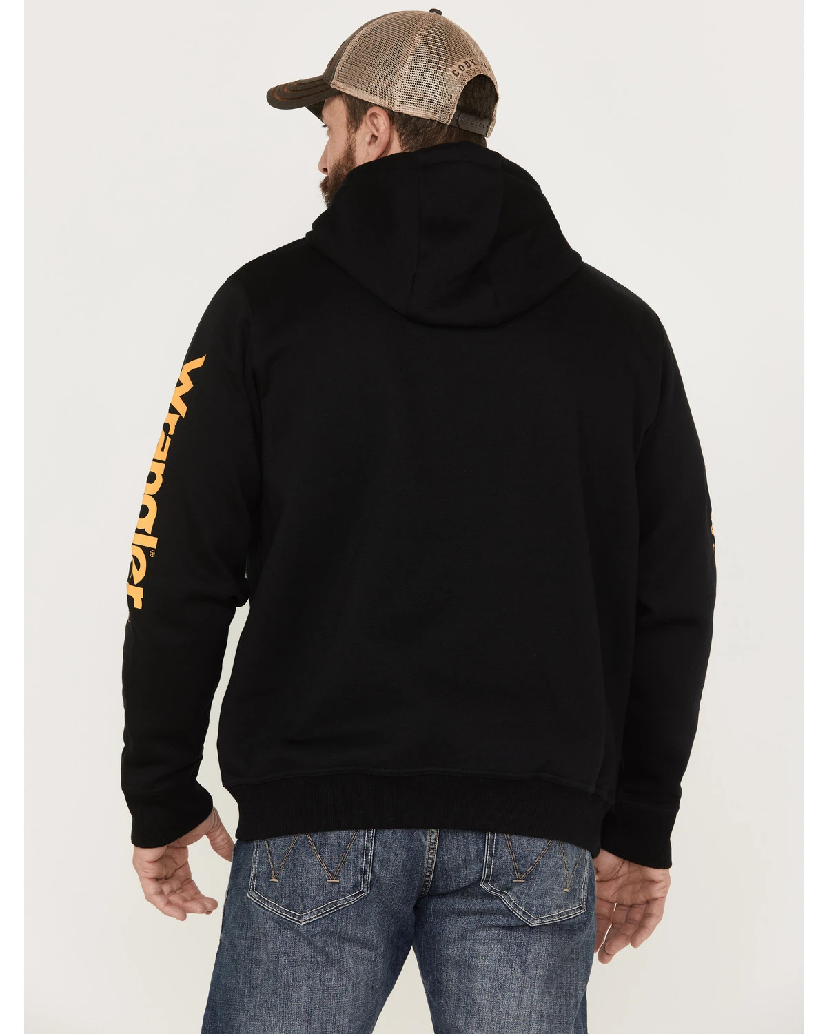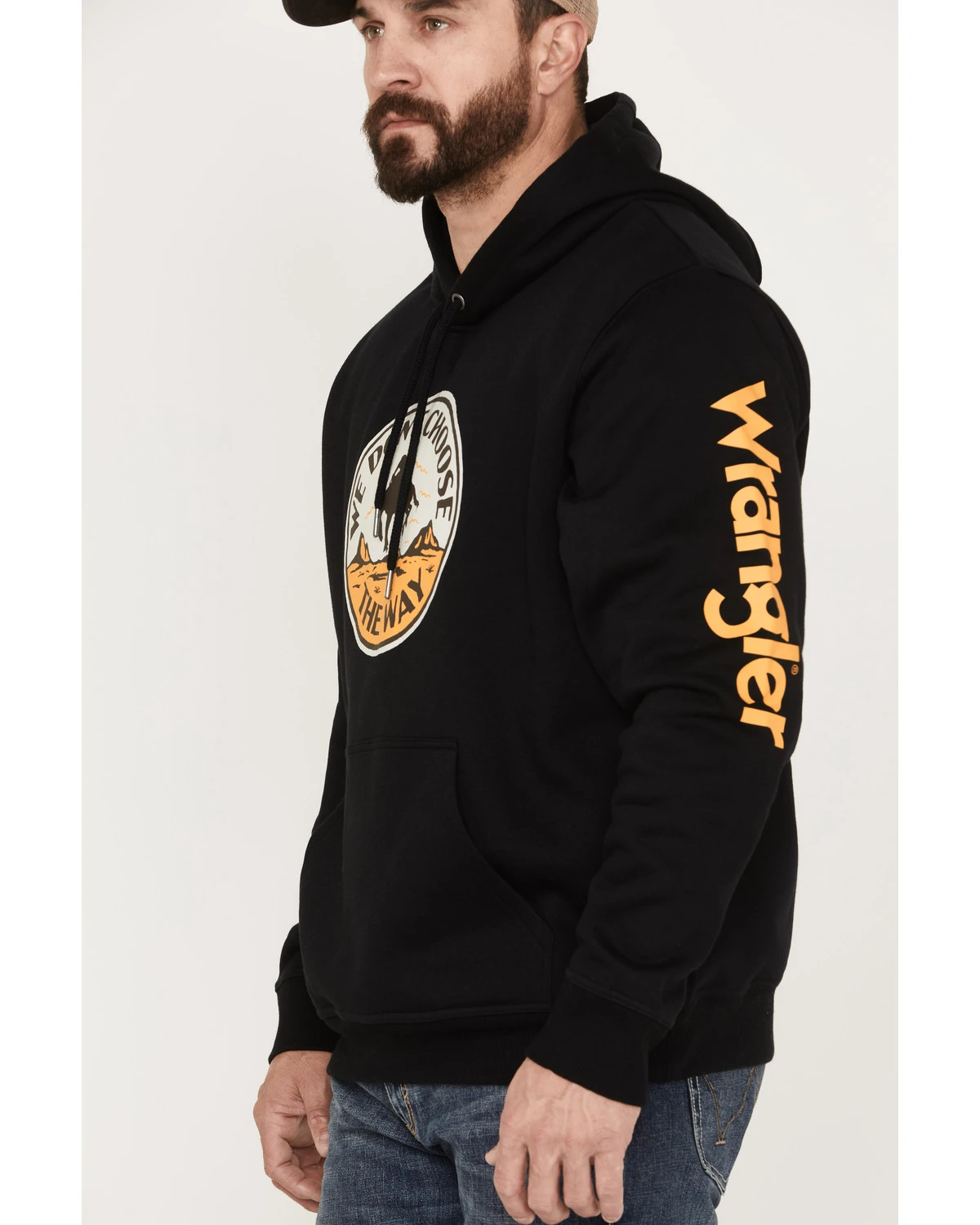 - “Wrangler” logo graphic down left sleeve